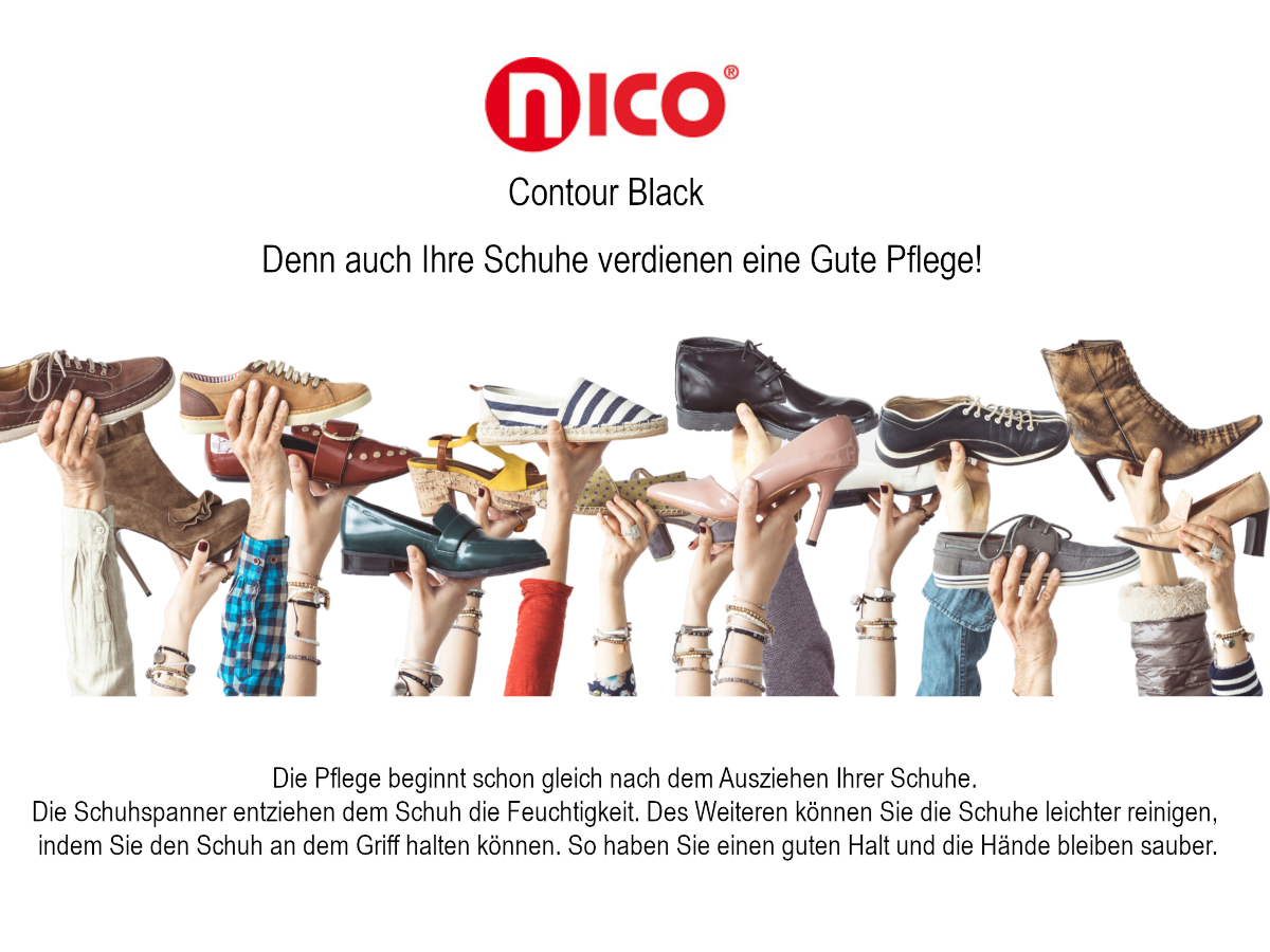 ANWENDUNG: Schuhe (noch fußwarm) direkt nach dem Tragen für min. 24 Stunden aufleisten. Vorderblatt in den Schuh einschieben und leicht nach unten drücken. Herausnehmen in umgekehrter Reihenfolge. Der Griff ist für sicheren Halt auch beim Schuhe putzen bestens geeignet.